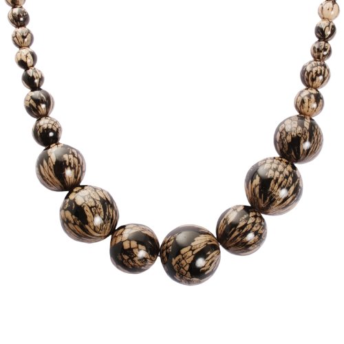 Stylish Black and pebble colour animal print Licute round beaded Necklace with descending sized beads. Bedazzled prides itself with high quality costume jewellery products which are carefully packed and are divinely presented in one of our gift bags. Length (including extension chain): 58cm. Height (of largest bead): 2.8cm.