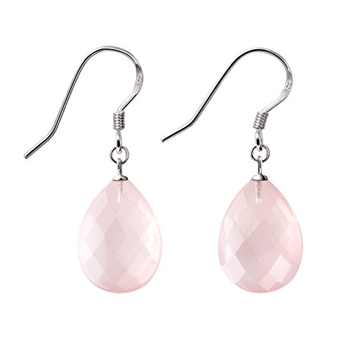 Beautifully facetted fine rose quartz semi precious gemstones. These large gemstones are a very pretty pink & an excellent example of the beauty of this stone. Mounted on 925 Sterling Silver with smooth ends to the hook so very comfortable to wear all day. Length of earring: 4cms. Size of stone: 15x20x8mm. Weight: 6.5gms Please note that these are totally natural large stones & as such there may be naturally occurring inclusions in the stones. These are not faults, they occur naturally. Please see our image. Comes in pretty box.