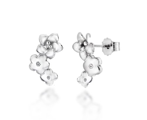 Very pretty flower stud earrings crafted from sterling silver and hand-set with real diamond accents. Post and butterfly fittings. Matching necklace available. Presented in beautiful Lily & Lotty's turquoise signature packaging which includes luxury pouch, ribbon-tied gift box and soft polishing cloth.